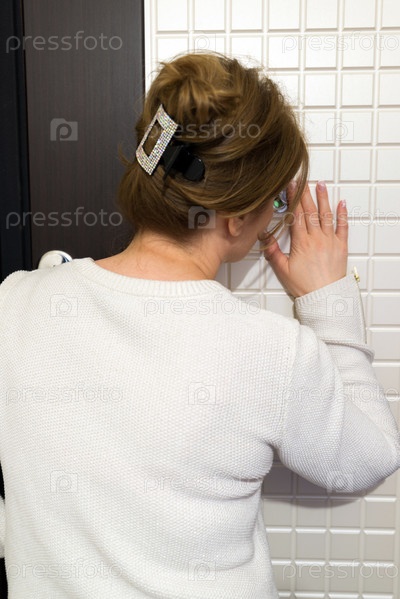 Женщина смотрит в дверной глазок
