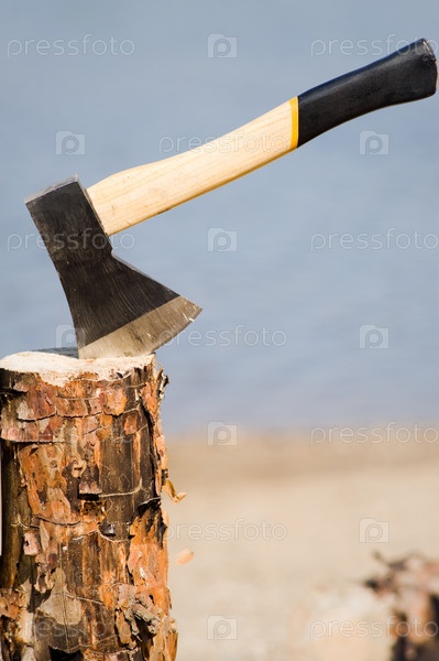 Топор в сосновом бревне