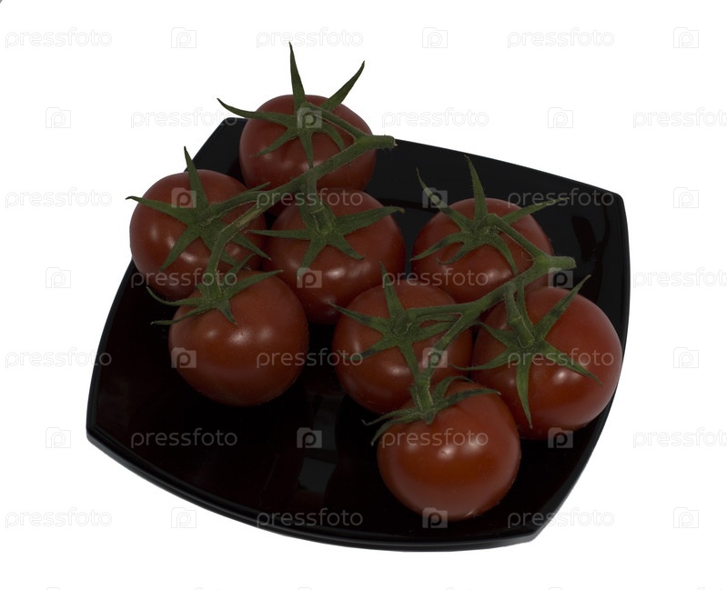 Две ветви красных помидоров на тарелке