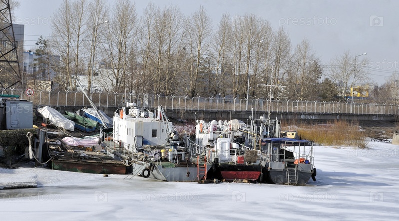 Старые суда, пришвартованные в зимнем порту