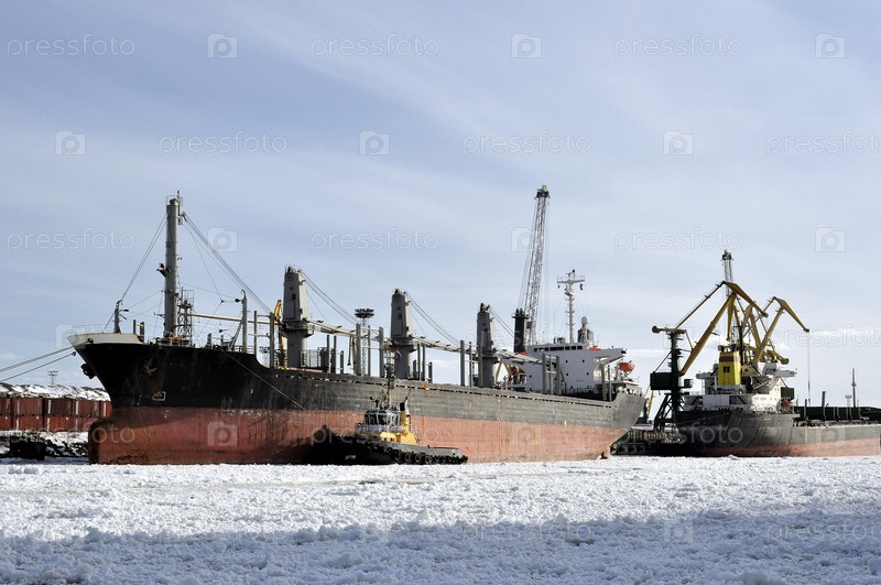 Грузовые корабли, пришвартованные в зимнем порту