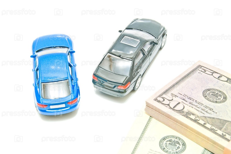 Черный и синий автомобили и банкноты
