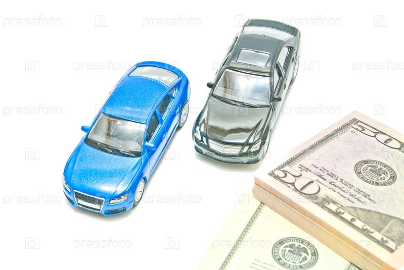 Черный и синий автомобили и банкноты