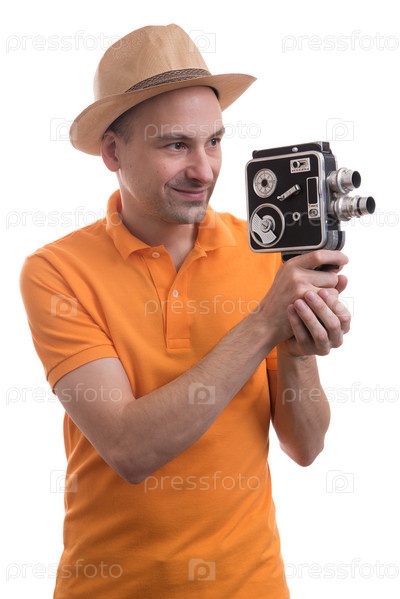 Мужчина со старой кинокамерой