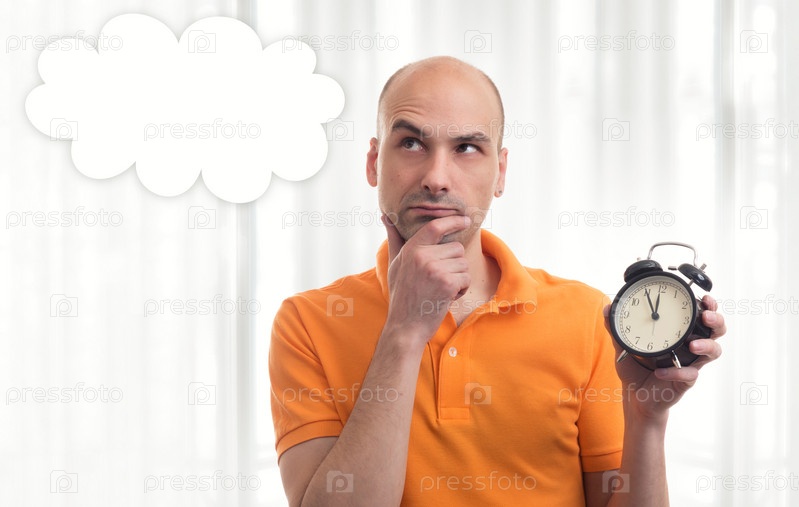 Красивый мужчина, держащий будильник