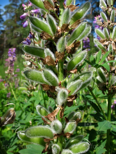 Зрелые побеги люпина, лупинуса, семейства бобовых