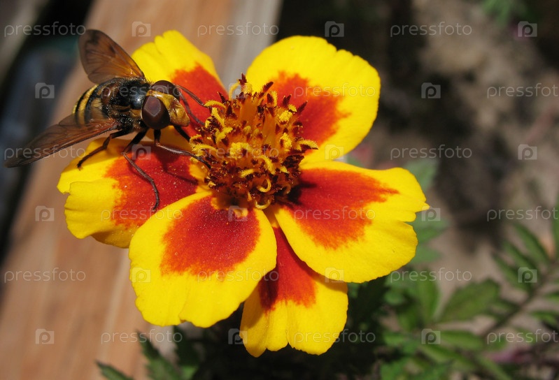 Пчелиная клетка (Муха ильница, Ильница обыкновенная) (лат. Eristalis tenax) на цветке тагетеса Макро