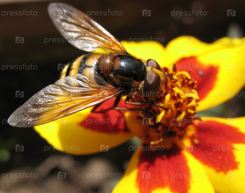 Пчелиная клетка (муха ильница, ильница обыкновенная), еристалис тенакс, на цветке тагетеса