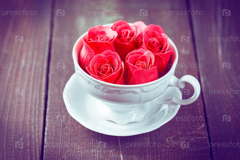 Розовые розы в чашке