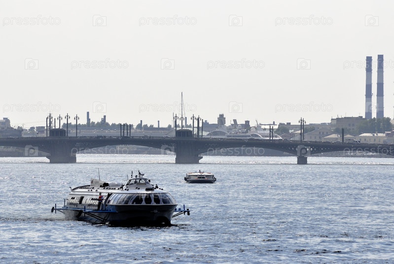 Прогулочный катер на реке Нева в Санкт-Петербурге