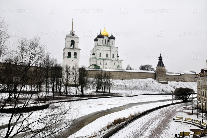 Вид с реки на Псковский Кремль (Кром)