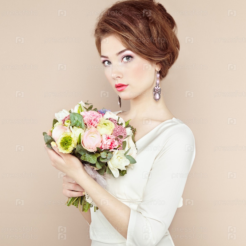Женщина с букетом цветов в руках