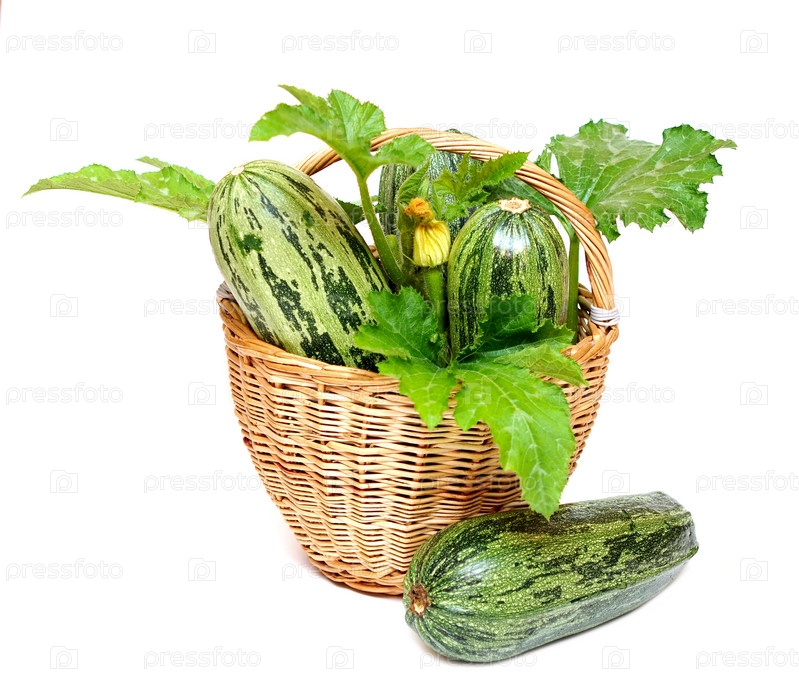 Кабачки в корзине на белом фоне