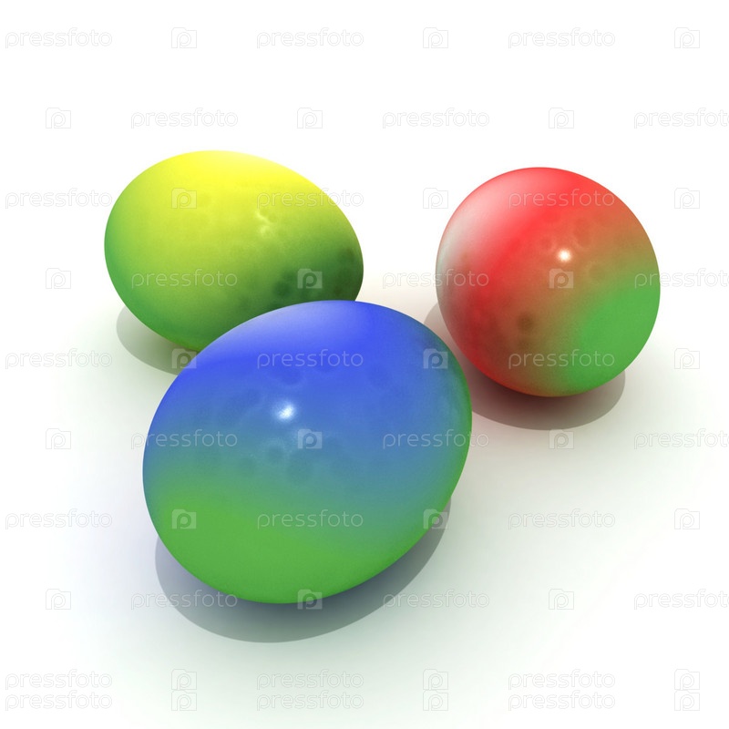Разноцветные яйца на белом фоне