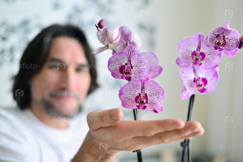 Мужчина с розовой орхидеей