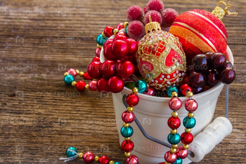 Ведро с рождественскими украшениями