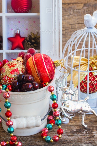 Ведро с рождественскими украшениями