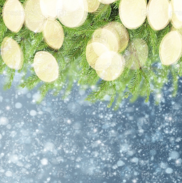 Еловые ветки на фоне снега