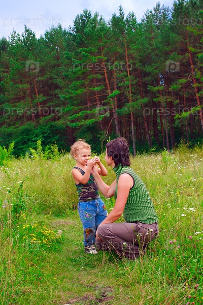 Мама и сын на природе