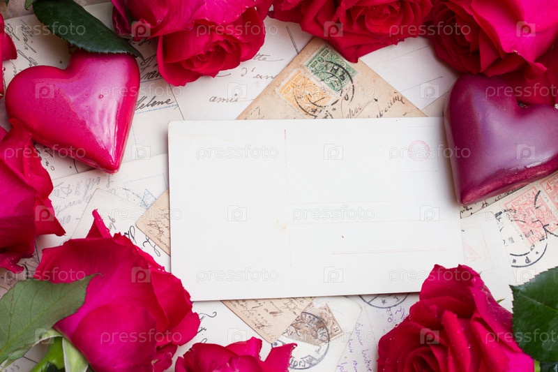 Старые открытки и букет роз