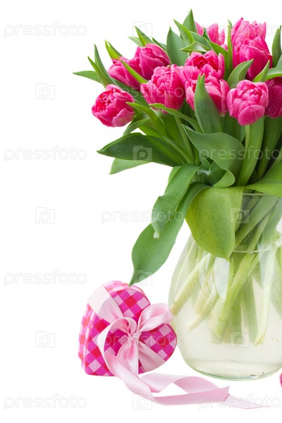 Букет разноцветных тюльпанов и подарок
