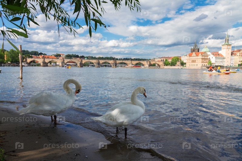 Лебеди на фоне Карлова моста