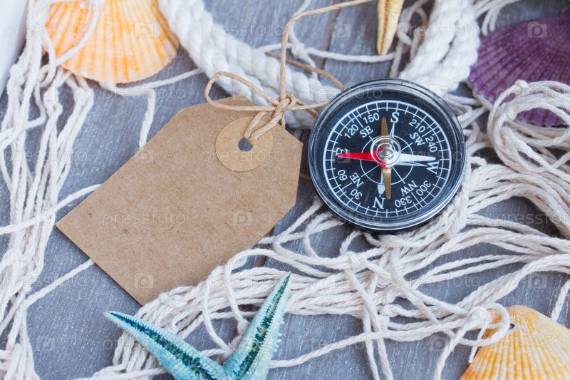 Компас и рыболовная сеть с биркой