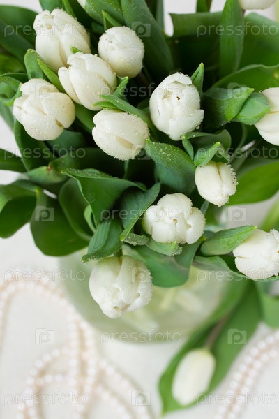 Букет белых тюльпанов в вазе