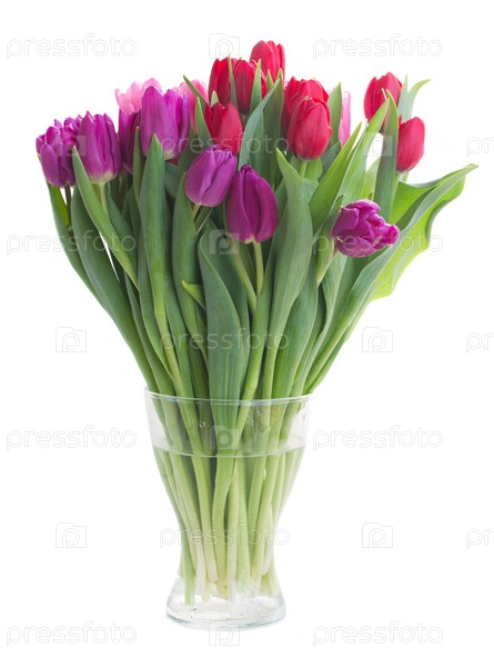 Букет красных и фиолетовых тюльпанов