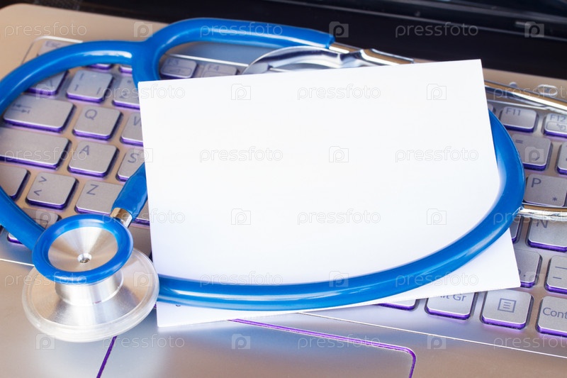 Стетоскоп на клавиатуре ноутбука