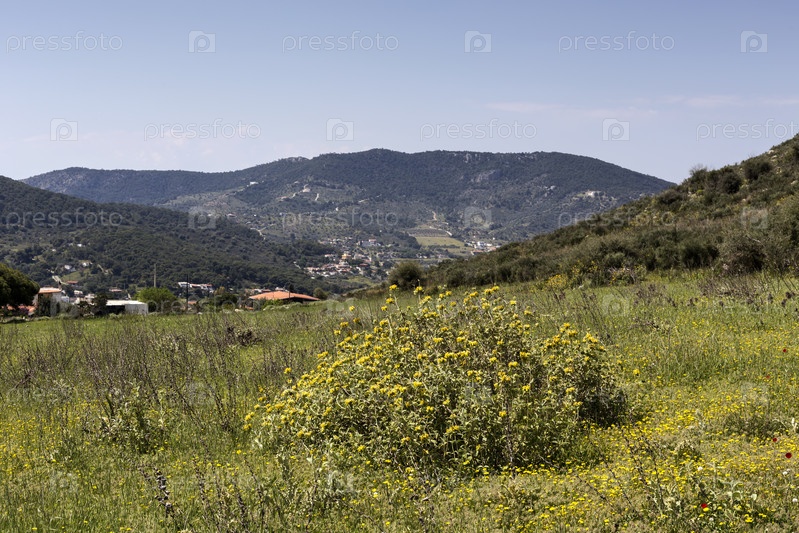 Кустарниковый хвойник (Phlomis fruticosa) растет в горах