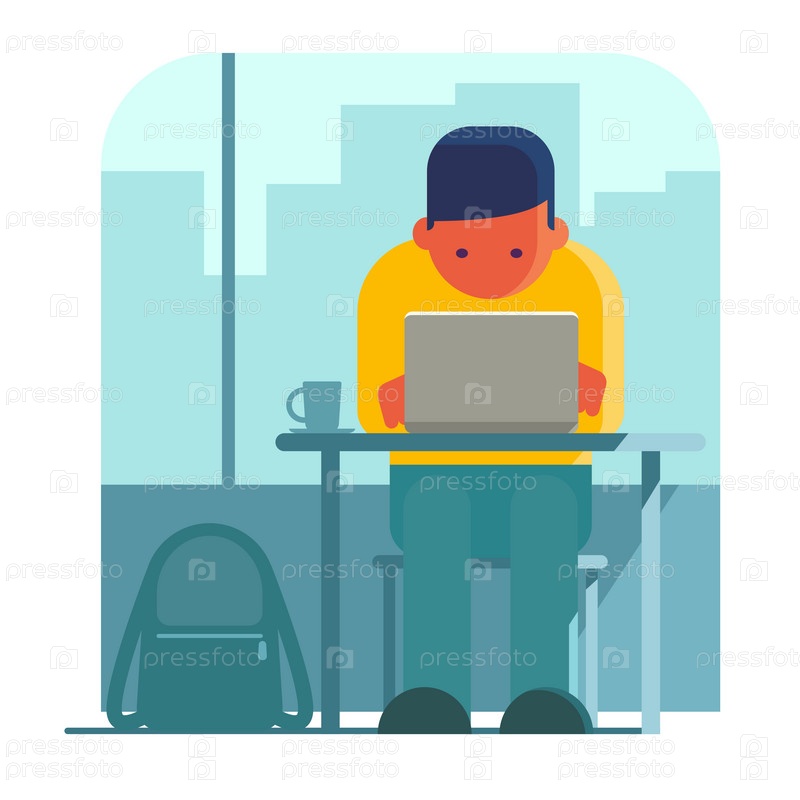 Человек, работающий на ноутбуке в кафе
