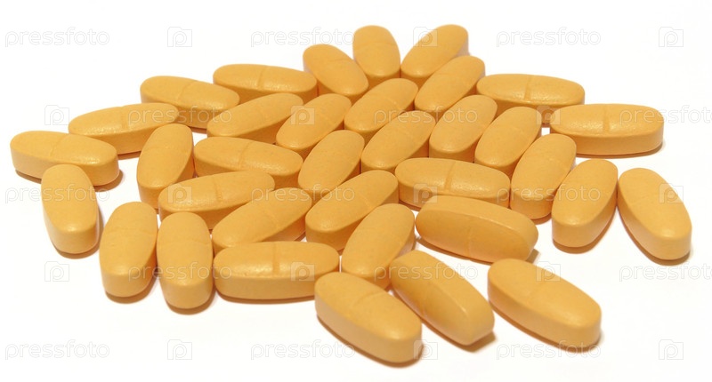 Желтые таблетки на белом фоне