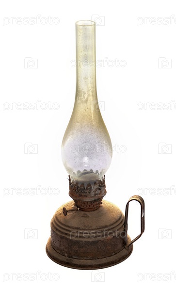 Старая керосиновая лампа на белом фоне