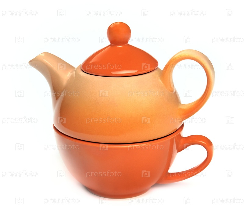 Чайник и чашка на белом фоне