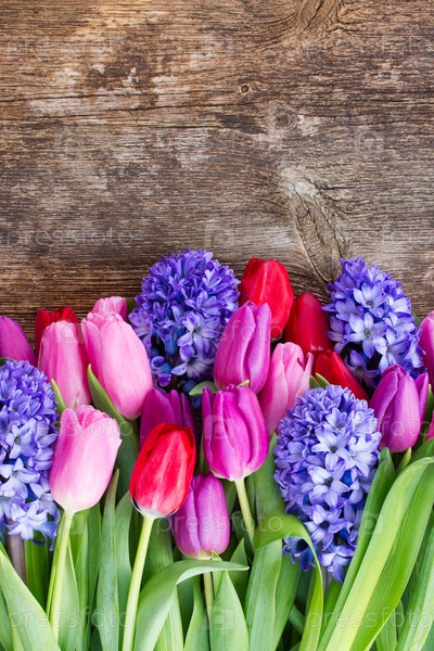 Синие гиацинты и тюльпаны