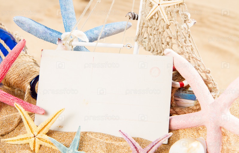 Открытка и морская звезда на пляже