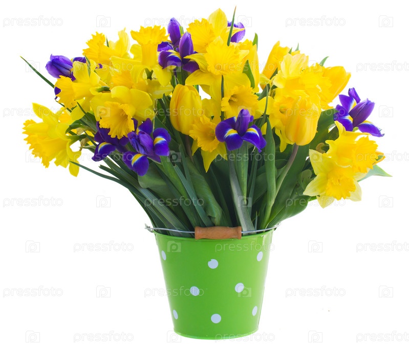 Весенние нарциссы, тюльпаны и ирисы