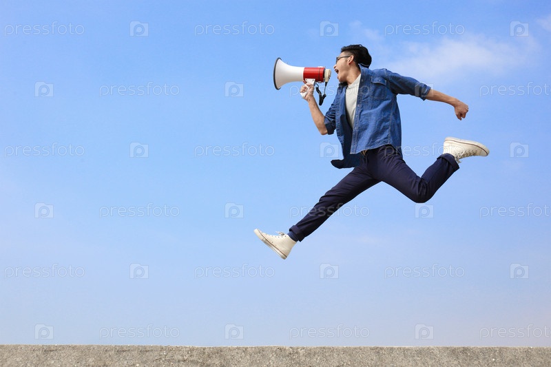 Мужчина кричит в мегафон