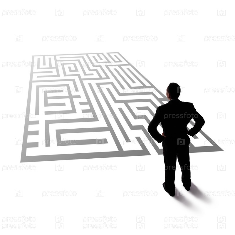 Бизнесмен смотрит на лабиринт