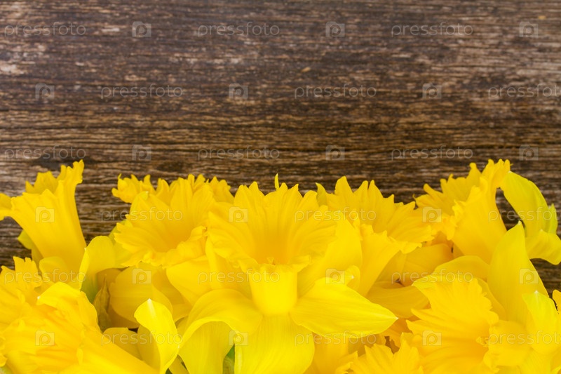 Нарциссы на деревянном фоне
