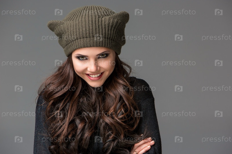 Красивая сексуальная молодая женщина в смешной шапке с ушами