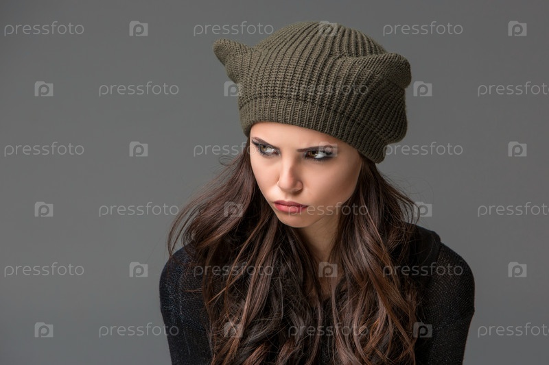 Красивая сексуальная молодая женщина в смешной шапке с ушами