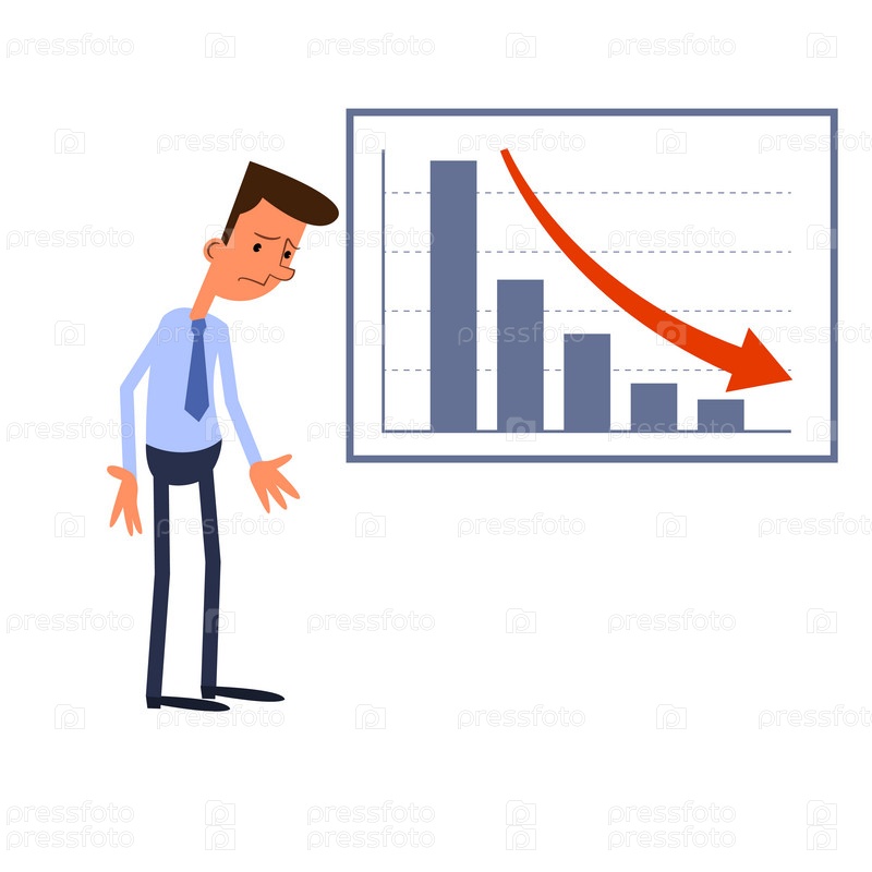 Разочарованный бизнесмен возле таблицы с негативной статистикой