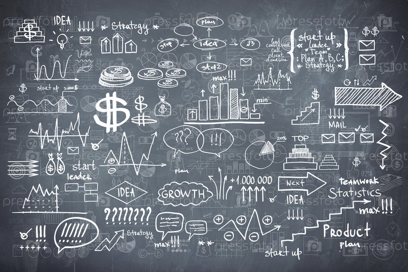 Иконки на доске. Финансы и бизнес