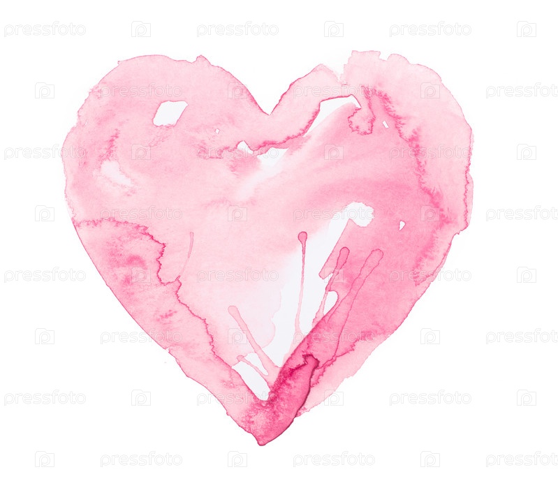 Красное акварельное сердце на белом фоне