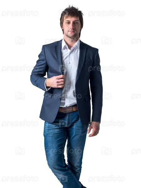 Мужчина в пиджаке и джинсах