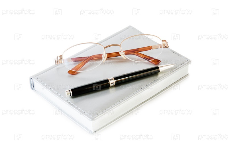Блокнот, ручка и очки