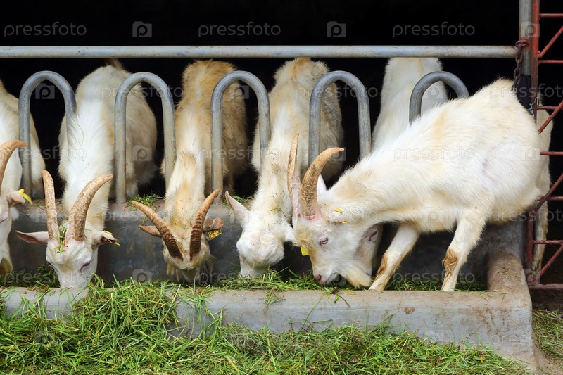 Козы едят траву на ферме