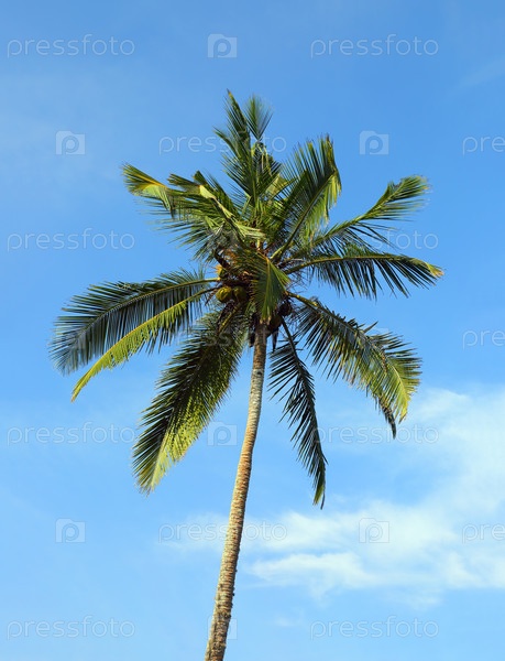Кокосовая пальма на фоне голубого неба